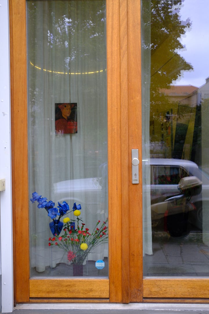 Я даю себе волю не экономить на цветах — и это моя отдушина. Иногда покупаю так много, что ставлю букет в витрину офиса. Получился такой алтарь, как у тайцев при входе в помещение.